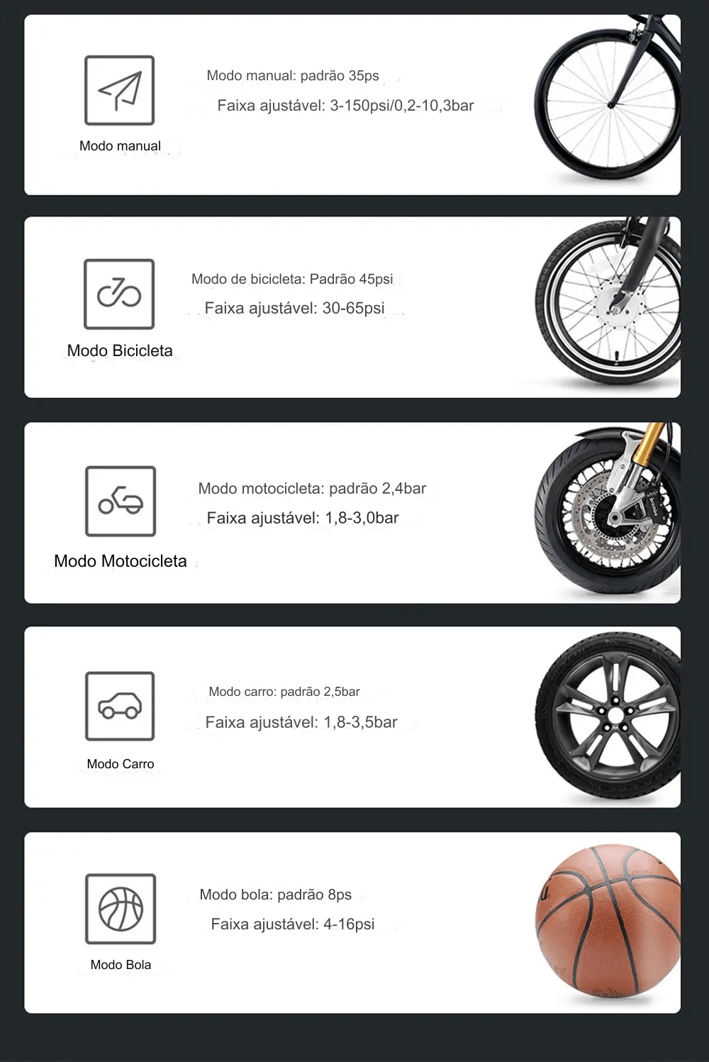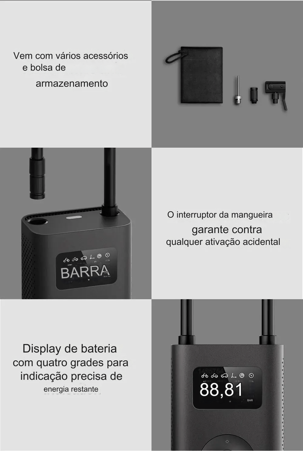 - Versatilidade em Suas Mãos: Adeus preocupações com pneus de carros, motos e bicicletas. Além disso, este gadget versátil lida com infláveis, tornando-se seu companheiro ideal para aventuras ao ar livre.