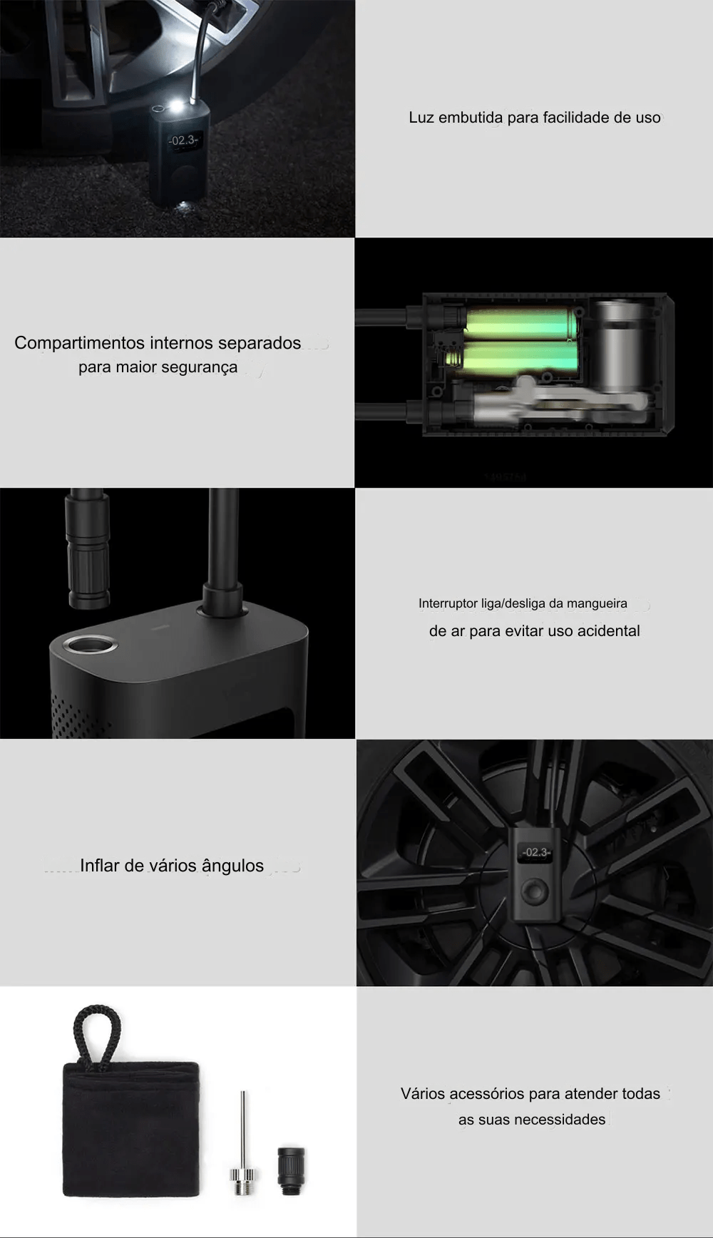 Você já passou pela frustração de pneus murchos em momentos cruciais? Se sim, nossa solução inovadora está aqui para aliviar suas dores! Apresentamos a Xiaomi Mijia Bomba Elétrica 1S, o compressor de ar portátil que redefine a conveniência e a tranquilidade nas estradas.